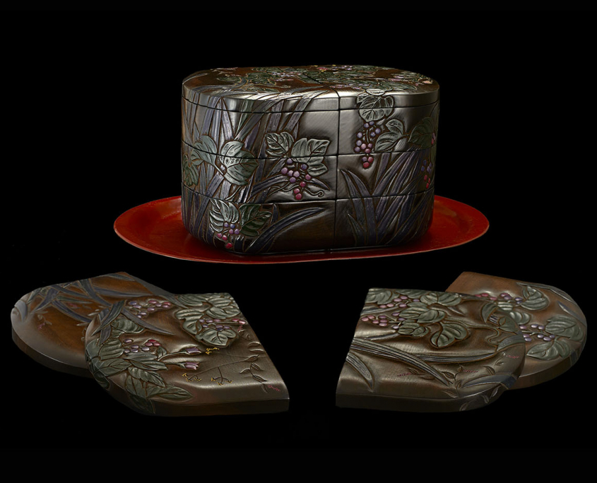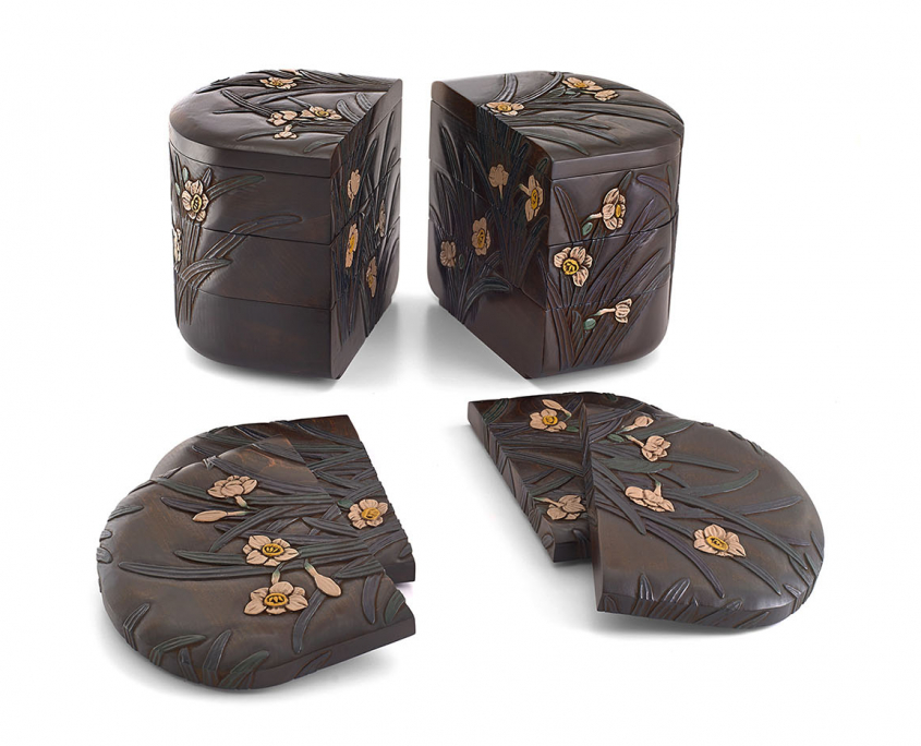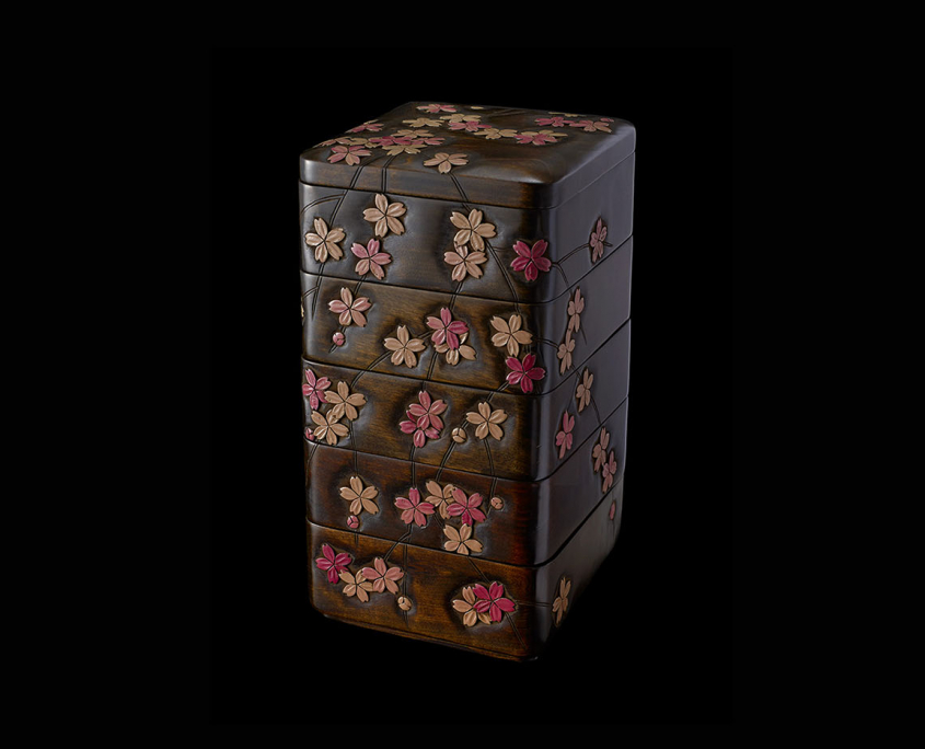 桜の花びらの数で重ねる順番を表したり、2段ごとに付いている蓋は取り皿になります。また真ん中から2つに分かれて、それぞれに蓋が付いているなど、随所に使い手の気持ちを汲んだアイデアが盛り込まれています。